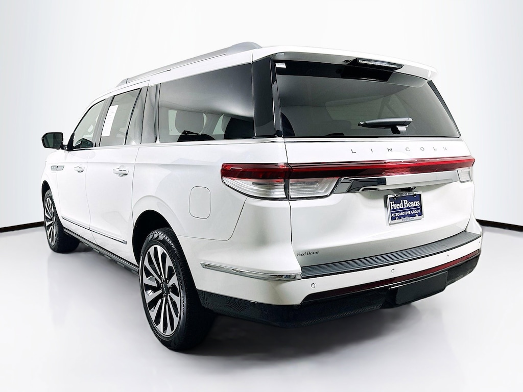 2023 Lincoln Navigator L Reserve with a V6 engine, 10-speed automatic transmission, and 4WD, finished in Pristine White Metallic Tri-Coat. This vehicle comes with the remainder of the factory warranty, is factory certified, and includes our free first oil change, 5-day return, 30-day exchange policy, and the Fred Beans Auto Rewards Program.