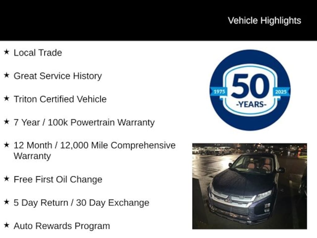 Recent Arrival! 2020 Mitsubishi Outlander Sport 2.0 ES 2.0 ES 2.0L I4 SMPI DOHC 16V LEV3-ULEV70 148hp CVT FWD 4D Sport Utility Labrador Black Metallic Local Trade, Great Service History, Triton Certified Vehicle, 7 Year / 100k Powertrain Warranty, 12 Month / 12,000 Mile Comprehensive Warranty, Free First Oil Change, 5 Day Return / 30 Day Exchange, Auto Rewards Program, ABS brakes, Alloy wheels, Automatic temperature control, Electronic Stability Control, Exterior Parking Camera Rear, Fabric Seat Trim, Heated door mirrors, Illuminated entry, Low tire pressure warning, Power door mirrors, Radio: AM/FM 7.0" Display Audio, Remote keyless entry, Steering wheel mounted audio controls, Traction control.
