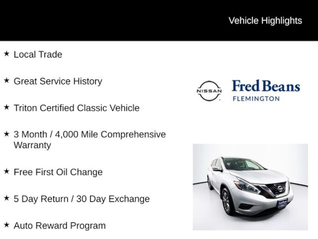 For better peace of mind all our used vehicles have a 127-point inspection and come with a 5-day return, 30-day exchange (As-Is vehicles are excluded). Our exclusive Auto Rewards Program provides better value with Free First Oil change, Free Pa State Safety inspections, discounts for local merchants and more. Plus, you can earn up to $2000 towards your next vehicle just by servicing with Fred Beans! As Fred Beans always says, our used cars are better because our reputation depends on it.