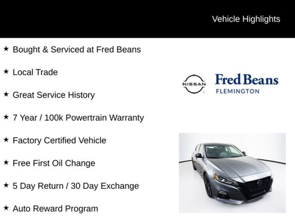 2022 Nissan Altima 2.5 SR 2.5 SR 2.5L 4-Cylinder DOHC 16V CVT with Xtronic FWD 4D Sedan Gun Metallic Bought & Serviced at Fred Beans, Local Trade, Great Service History, 7 Year / 100k Powertrain Warranty, Factory Certified Vehicle, Free First Oil Change, 5 Day Return / 30 Day Exchange, Auto Reward Program, CVT with Xtronic.