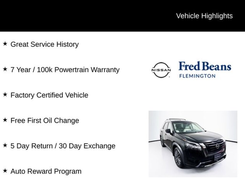 2023 Nissan Pathfinder SL SL V6 9-Speed Automatic 4WD 4D Sport Utility Super Black Great Service History, 7 Year / 100k Powertrain Warranty, Factory Certified Vehicle, Free First Oil Change, 5 Day Return / 30 Day Exchange, Auto Reward Program, 4WD.