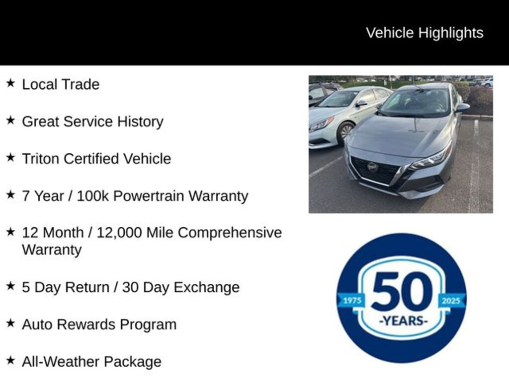 This Triton Certified Sentra SV is a true standout, boasting impressive fuel efficiency with an EPA-estimated 29 MPG in the city and 39 MPG on the highway. With its 2.0L DOHC engine and Xtronic CVT with FWD, you'll enjoy a smooth and responsive driving experience, making every commute a pleasure.