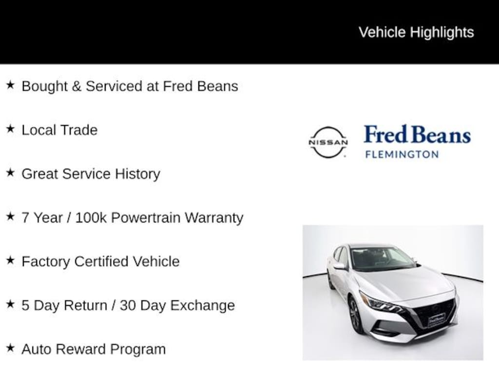 2023 Nissan Sentra SV SV 2.0L DOHC CVT with Xtronic FWD 4D Sedan Brilliant Silver Metallic Bought & Serviced at Fred Beans, Local Trade, Great Service History, 7 Year / 100k Powertrain Warranty, Factory Certified Vehicle, 5 Day Return / 30 Day Exchange, Auto Reward Program, CVT with Xtronic, Charcoal Cloth.