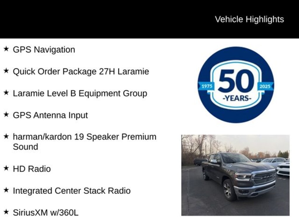 Recent Arrival! 2023 Ram 1500 Laramie HEMI 5.7L V8 Multi Displacement VVT eTorque 8-Speed Automatic 4WD 4D Crew Cab Granite Crystal Metallic Clearcoat 12" Touchscreen Display, 2nd Row In Floor Storage Bins, 4G LTE Wi-Fi Hot Spot, Apple CarPlay, Auto High Beam Headlamp Control, Blind Spot & Cross Path Detection, Connected Travel & Traffic Services, Connectivity - US/Canada, Disassociated Touchscreen Display, Electric Shift-On-Demand Transfer Case, Foam Bottle Insert (Door Trim Panel), For Details, Visit DriveUconnect.com, For More Info, Call 800-643-2112, Front Door Accent Lighting, Front LED Fog Lamps, Global Telematics Box Module (TBM), Google Android Auto, GPS Antenna Input, GPS Navigation, harman/kardon 19 Speaker Premium Sound, HD Radio, Heated Front Seats, Heated Steering Wheel, Integrated Center Stack Radio, Integrated Voice Command w/Bluetooth, Laramie Level B Equipment Group, LED Reflector Headlamps, ParkSense Front/Rear Park Assist w/Stop, Quick Order Package 27H Laramie, Radio: Uconnect 5 Nav w/12.0" Display, Rain Sensitive Windshield Wipers, Rear Door Accent Lighting, Rear Power Sliding Window, Rear Underseat Compartment Storage, Rear Window Defroster, Remote Tailgate Release, SiriusXM Radio Service, SiriusXM w/360L, USB Host Flip, Ventilated Front Seats.