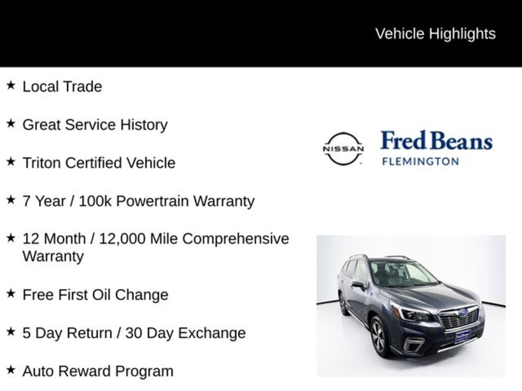 Recent Arrival! 2021 Subaru Forester Touring Touring 2.5L 4-Cylinder DOHC 16V VVT Lineartronic CVT AWD 4D Sport Utility Magnetite Gray Metallic Local Trade, Great Service History, Triton Certified Vehicle, 7 Year / 100k Powertrain Warranty, 12 Month / 12,000 Mile Comprehensive Warranty, Free First Oil Change, 5 Day Return / 30 Day Exchange, Auto Reward Program.