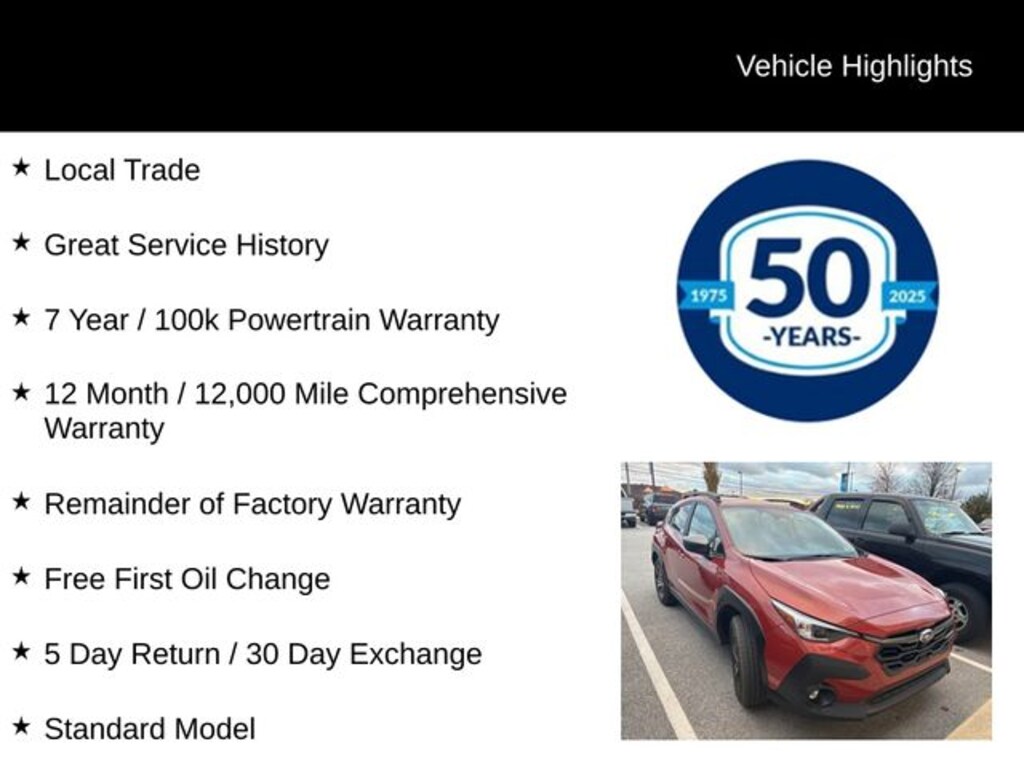 From the advanced STARLINK infotainment system to the premium cloth upholstery, this Crosstrek is packed with features that elevate your driving experience. The auto-dimming mirrors, dual-zone climate control, and 17-inch alloy wheels add a touch of refinement, while the ample cargo space and versatile split-folding rear seats make it easy to accommodate your active lifestyle.