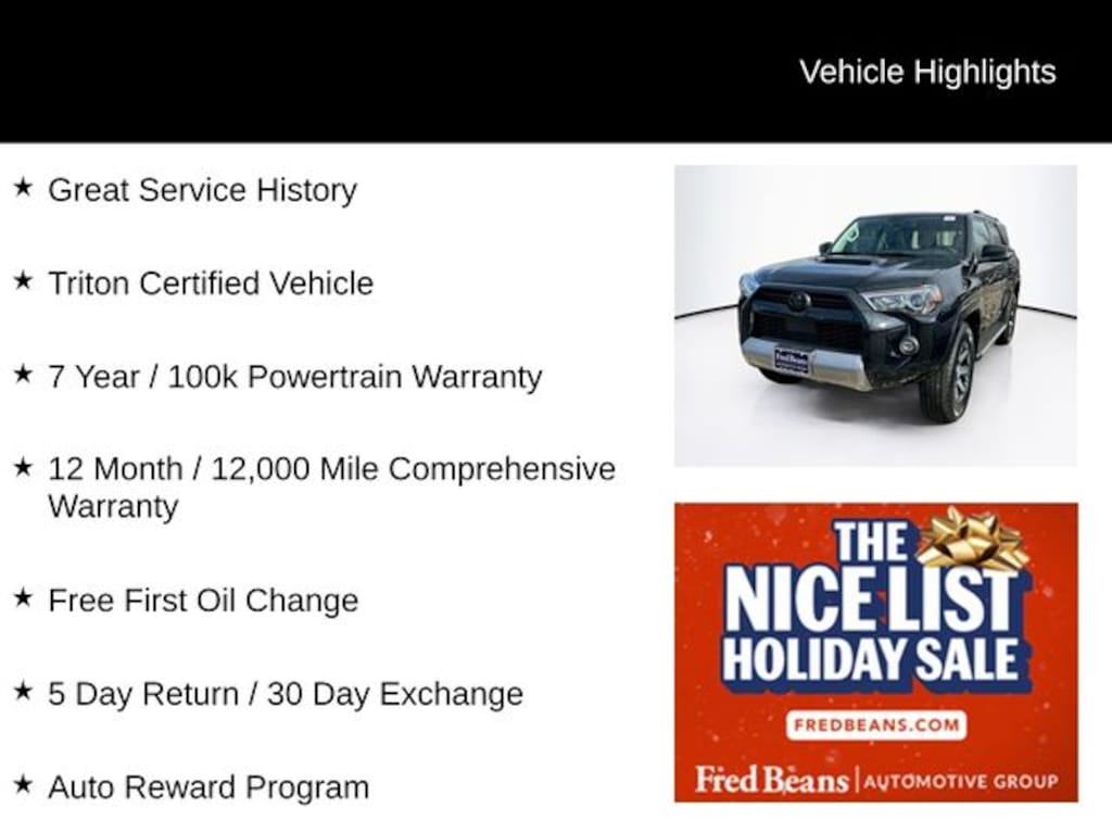 For better peace of mind all our used vehicles have a 127-point inspection and come with a 5-day return, 30-day exchange (As-Is vehicles are excluded). Our exclusive Auto Rewards Program provides better value with Free First Oil change, Free Pa State Safety inspections, discounts for local merchants and more. Plus, you can earn up to $2000 towards your next vehicle just by servicing with Fred Beans! As Fred Beans always says, our used cars are better because our reputation depends on it.