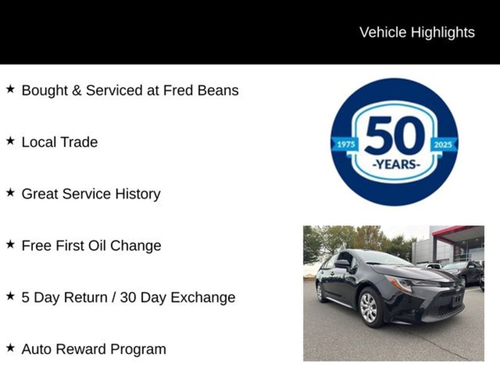 Recent Arrival! 2022 Toyota Corolla LE 1.8L I4 DOHC 16V CVT FWD 4D Sedan Black Sand Pearl Bought & Serviced at Fred Beans, Local Trade, Great Service History, Free First Oil Change, 5 Day Return / 30 Day Exchange, Auto Reward Program, Corolla LE, 4D Sedan, 1.8L I4 DOHC 16V, FWD, Black Sand Pearl, Black w/Premium Fabric Seat Trim.