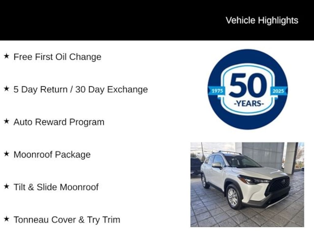 Recent Arrival! 2023 Toyota Corolla Cross LE 2.0L I4 PDI DOHC 16V LEV3-SULEV30 169hp CVT AWD 4D Sport Utility Wind Chill Pearl Free First Oil Change, 5 Day Return / 30 Day Exchange, Auto Reward Program, Corolla Cross LE, 4D Sport Utility, 2.0L I4 PDI DOHC 16V LEV3-SULEV30 169hp, AWD, Wind Chill Pearl, Light Gray w/Fabric Seat Trim, Moonroof Package, Tilt & Slide Moonroof, Tonneau Cover & Try Trim.