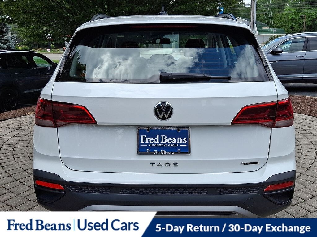 2022 Volkswagen Taos 1.5T S 1.5L I4 Turbocharged DOHC 16V LEV3-SULEV30 158hp 7-Speed DSG Automatic with Tiptronic AWD 4D Sport Utility Pure White Great Service History, Remainder of Factory Warranty, Factory Certified Vehicle, Free First Oil Change, Auto Reward Program.