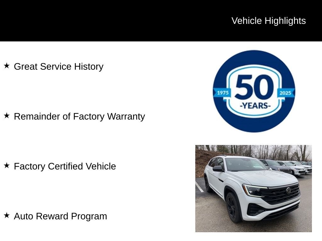 Recent Arrival! 2025 Volkswagen Atlas Cross Sport 2.0T SEL R-Line Black 2.0L TSI 8-Speed Automatic with Tiptronic AWD 4D Sport Utility Opal White Pearl Great Service History, Remainder of Factory Warranty, Factory Certified Vehicle, Auto Reward Program.