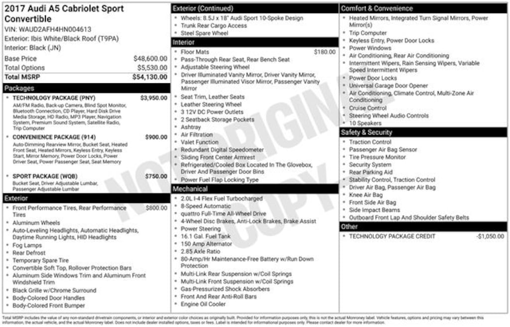 • Wheels: 9.0J x 19" Audi Sport 10-Y-Spoke Design$800