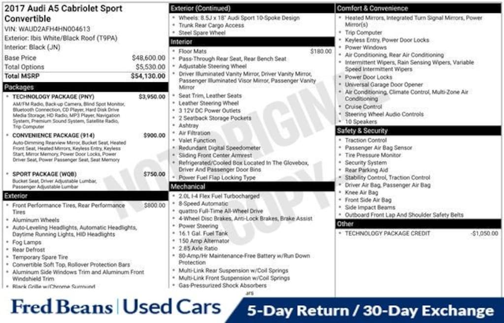 For better peace of mind all our used vehicles have a 127-point inspection and come with a 5-day return, 30-day exchange (As-Is vehicles are excluded). Our exclusive Auto Rewards Program provides better value with Free First Oil change, Free Pa State Safety inspections, discounts for local merchants and more. Plus, you can earn up to $2000 towards your next vehicle just by servicing with Fred Beans! As Fred Beans always says, our used cars are better because our reputation depends on it.