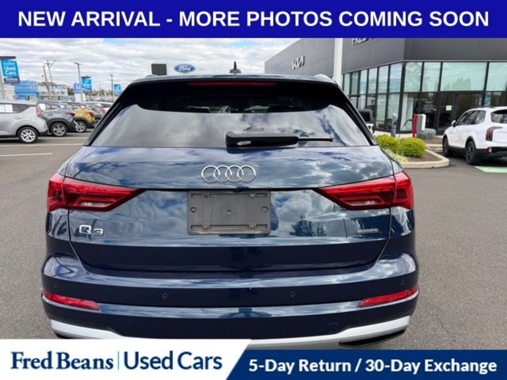 Recent Arrival! 2020 Audi Q3 Premium quattro 2.0L 4-Cylinder TFSI 8-Speed Automatic with Tiptronic quattro 4D Sport Utility Cosmos Blue Metallic 10 Speakers, 3.533 Axle Ratio, 4-Wheel Disc Brakes, ABS brakes, Air Conditioning, Alarm w/Motion Sensor, Alloy wheels, AM/FM radio, Audi Advanced Key, Audi Parking System Plus, Audi Side Assist, Audi smartphone interface (Apple CarPlay/Android Auto), Auto High-beam Headlights, Automatic temperature control, Brake assist, Bumpers: body-color, Convenience Package, Delay-off headlights, Driver door bin, Driver vanity mirror, Dual front impact airbags, Dual front side impact airbags, Electronic Stability Control, Exterior Parking Camera Rear, Four wheel independent suspension, Front anti-roll bar, Front Bucket Seats, Front Center Armrest, Front dual zone A/C, Front fog lights, Front reading lights, Fully automatic headlights, Heated door mirrors, Heated Front Bucket Seats, Heated front seats, HomeLink Garage Door Opener, Illuminated entry, Knee airbag, Leather Seating Surfaces, Leather Shift Knob, Leather steering wheel, Low tire pressure warning, Occupant sensing airbag, Outside temperature display, Overhead airbag, Overhead console, Panic alarm, Passenger door bin, Passenger vanity mirror, Power door mirrors, Power driver seat, Power Liftgate, Power moonroof, Power steering, Power windows, Radio data system, Radio: Audi Sound System, Rain sensing wipers, Rear air conditioning, Rear anti-roll bar, Rear fog lights, Rear reading lights, Rear seat center armrest, Rear window defroster, Rear window wiper, Remote keyless entry, SiriusXM All Access Service, Speed control, Speed-sensing steering, Split folding rear seat, Spoiler, Steering wheel mounted audio controls, Tachometer, Telescoping steering wheel, Tilt steering wheel, Traction control, Trip computer, Turn signal indicator mirrors, Variably intermittent wipers, Wheels: 18" 5-Arm Design.