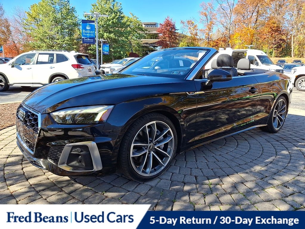2023 Audi A5 45 S line Premium Plus quattro 2.0L 4-Cylinder TFSI 7-Speed Automatic S tronic quattro 2D Convertible Mythos Black Metallic/Black Roof Great Service History, Triton Certified Vehicle, 7 Year / 100k Powertrain Warranty, 12 Month / 12,000 Mile Comprehensive Warranty, Remainder of Factory Warranty, Free First Oil Change, Auto Reward Program, quattro, Black w/Leather Seating Surfaces, Audi Active Lane Assist, Audi Phone Box, Audi Virtual Cockpit Plus, Bang & Olufsen Sound System w/3D Sound, Convenience Package, Hands-On Detection Steering Wheel, Leatherette Covered Center Console & Door Armrests, Neck-Level Heating System, Power Folding Exterior Mirrors, Premium Plus, Top View Camera System, Traffic Jam Assist, Ventilated Front Seats, Warm Weather Package.