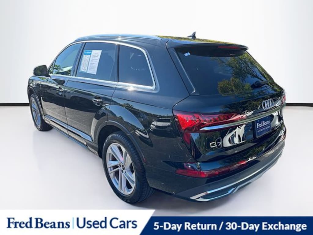 CARFAX One-Owner. Clean CARFAX. 2023 Audi Q7 55 Premium quattro 3.0L TFSI 8-Speed Automatic with Tiptronic quattro 4D Sport Utility Black Metallic For better peace of mind all our used vehicles have a 127-point inspection and come with a 5-day return, 30-day exchange (As-Is vehicles are excluded). Our exclusive Auto Rewards Program provides better value with Free First Oil change, Free Pa State Safety inspections, discounts for local merchants and more. Plus, you can earn up to $2000 towards your next vehicle just by servicing with Fred Beans! As Fred Beans always says, our used cars are better because our reputation depends on it.