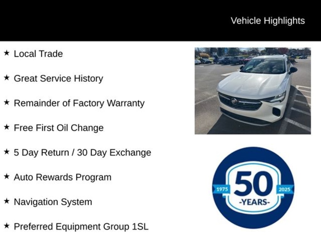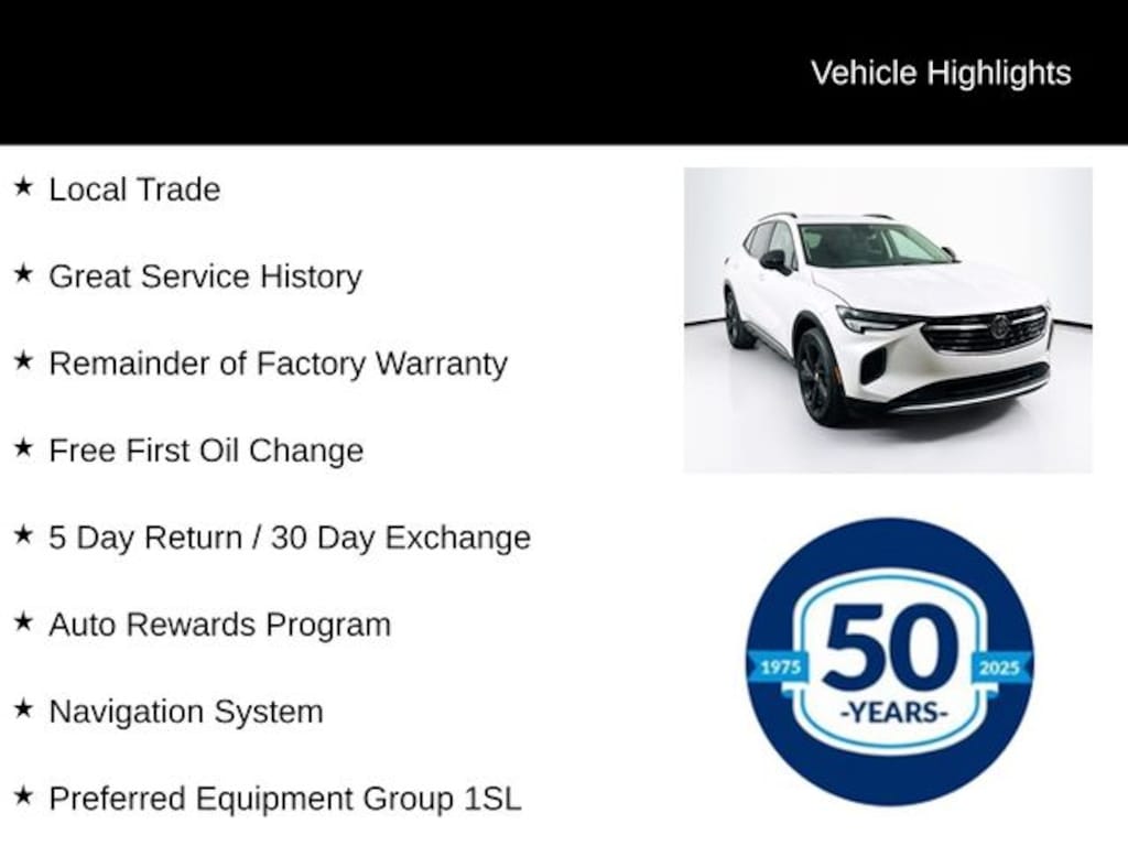 2023 Buick Envision Essence Essence 2.0L Turbocharged 9-Speed Automatic AWD 4D Sport Utility White Frost Tricoat Local Trade, Great Service History, Remainder of Factory Warranty, Free First Oil Change, 5 Day Return / 30 Day Exchange, Auto Rewards Program, 3-Channel Programmable Universal Home Remote, Auto High-beam Headlights, Auto-dimming Rear-View mirror, Black Roof Rails, Body-Color Door Handles, Bose Premium 9-Speaker Audio System Feature, Front & Rear Park Assist, Front dual zone A/C, Head-Up Display, Heated Driver & Front Passenger Seats, Heated steering wheel, Illuminated entry, IntelliBeam Headlamp Control w/Auto High Beam, Memory seat, Navigation System, Power driver seat, Power Liftgate, Power Panoramic Tilt-Sliding Moonroof, Preferred Equipment Group 1SL, Radio: Buick Infotainment System AM/FM w/Nav, Rear Cargo Compartment Cover, Sport Alloy Pedals, Sport Touring Package, Steering wheel mounted audio controls, Technology Package I, Wheels: 20" Aluminum w/Dark Finish, Wireless Apple CarPlay/Wireless Android Auto.