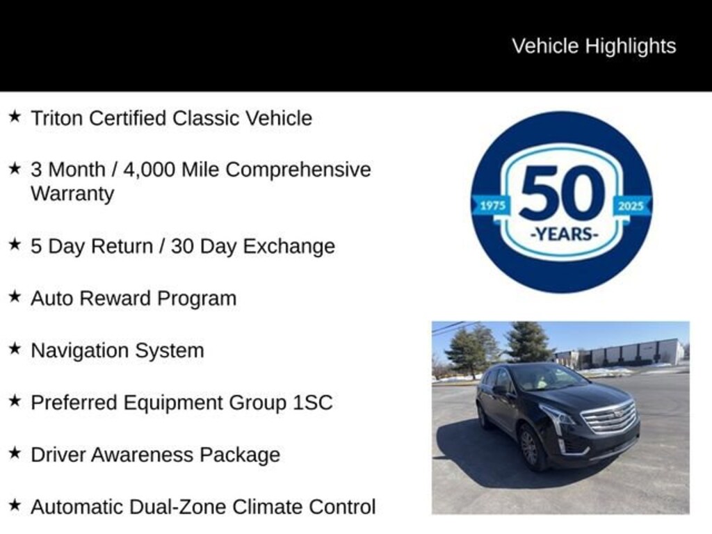 This Cadillac XT5 Luxury is a Triton Certified Classic Vehicle, meaning it has undergone a rigorous inspection and comes with a comprehensive 3-month/4,000-mile warranty. You can drive with confidence, knowing that this vehicle has been meticulously maintained and is ready to provide you with years of reliable service.