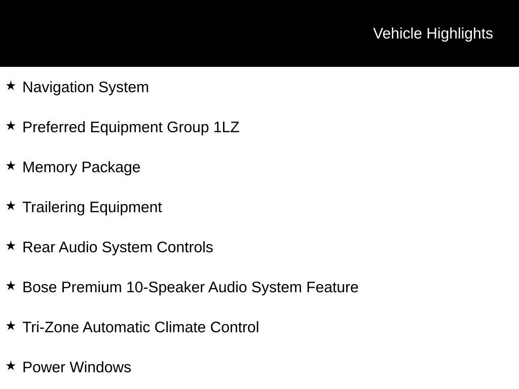 • Memory Package, Preferred Equipment Group 1LZ, and Trailering Equipment
