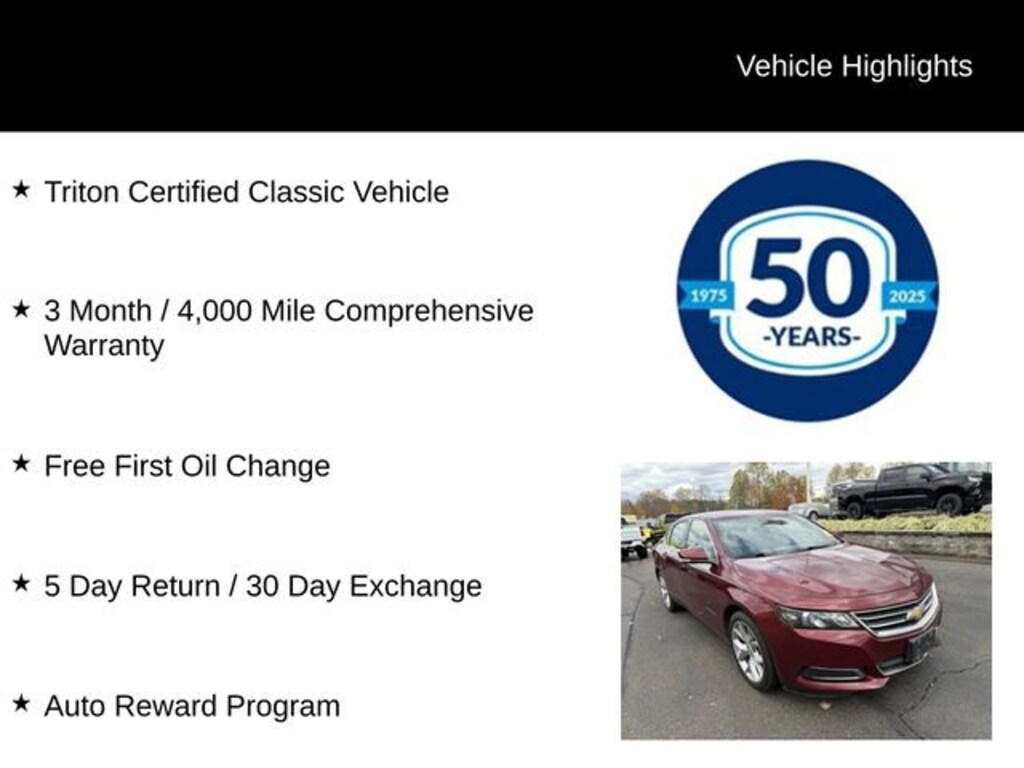 Recent Arrival! 2017 Chevrolet Impala LT 1LT 3.6L V6 DI DOHC 6-Speed Automatic Electronic with Overdrive FWD 4D Sedan Siren Red Tintcoat Triton Certified Classic Vehicle, 3 Month / 4,000 Mile Comprehensive Warranty, Free First Oil Change, 5 Day Return / 30 Day Exchange, Auto Reward Program.