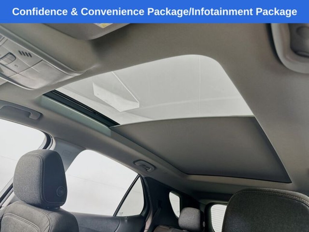 Lane Change Alert w/Side Blind Zone Alert, Rear Park Assist w/Audible Warning, Bluetooth® For Phone, Apple CarPlay/Android Auto, 120-Volt Power Outlet, 2 Rear USB Charging-Only Ports, 2 USB Data Ports, 2 USB Data Ports w/SD Card Reader, 2 USB Ports & Auxiliary Input Jack, 3-Spoke Leather-Wrapped Steering Wheel, 3.17 Final Drive Axle Ratio, 4-Wheel Disc Brakes, 6 Speaker Audio System Feature, 6 Speakers, 8-Way Power Driver Seat Adjuster, ABS brakes, Air Conditioning, AM/FM radio: SiriusXM, Brake assist, Compass, Confidence & Convenience Package, Delay-off headlights, Driver Confidence Package, Driver Convenience Package, Driver door bin, Driver vanity mirror, Dual front impact airbags, Dual front side impact airbags, Electronic Stability Control, Emergency communication system: OnStar and Chevrolet connected services capable, Front anti-roll bar, Front Bucket Seats, Front Center Armrest, Front Passenger 4-Way Manual Seat Adjuster, Front reading lights, Fully automatic headlights, HD Rear Vision Camera, Heated door mirrors, Heated Driver & Front Passenger Seats, High-Intensity Discharge Headlights, Illuminated entry, Infotainment Package, Leather-Wrapped Shift Lever, Low tire pressure warning, Occupant sensing airbag, Outside Heated Power-Adjustable Mirrors, Outside temperature display, Overhead airbag, Overhead console, Panic alarm, Passenger door bin, Passenger vanity mirror, Power door mirrors, Power driver seat, Power steering, Power Sunroof, Power windows, Premium audio system: Chevrolet MyLink, Premium Cloth Seat Trim, Radio data system, Radio: Chevrolet Infotainment 3 Plus System w/Navi, Radio: Chevrolet Infotainment 3 System w/AM/FM, Rear anti-roll bar, Rear Cross Traffic Alert, Rear Power Liftgate, Rear reading lights, Rear seat center armrest, Rear window wiper, Remote keyless entry, Remote Vehicle Starter System, Roof rack: rails only, Security system, SiriusXM Radio, Split folding rear seat, Spoiler, Steering wheel mounted audio controls, Sun & Navigation Package (DISC), Tachometer, Telescoping steering wheel, Tilt steering wheel, Trip computer, Universal Home Remote, Variably intermittent wipers.