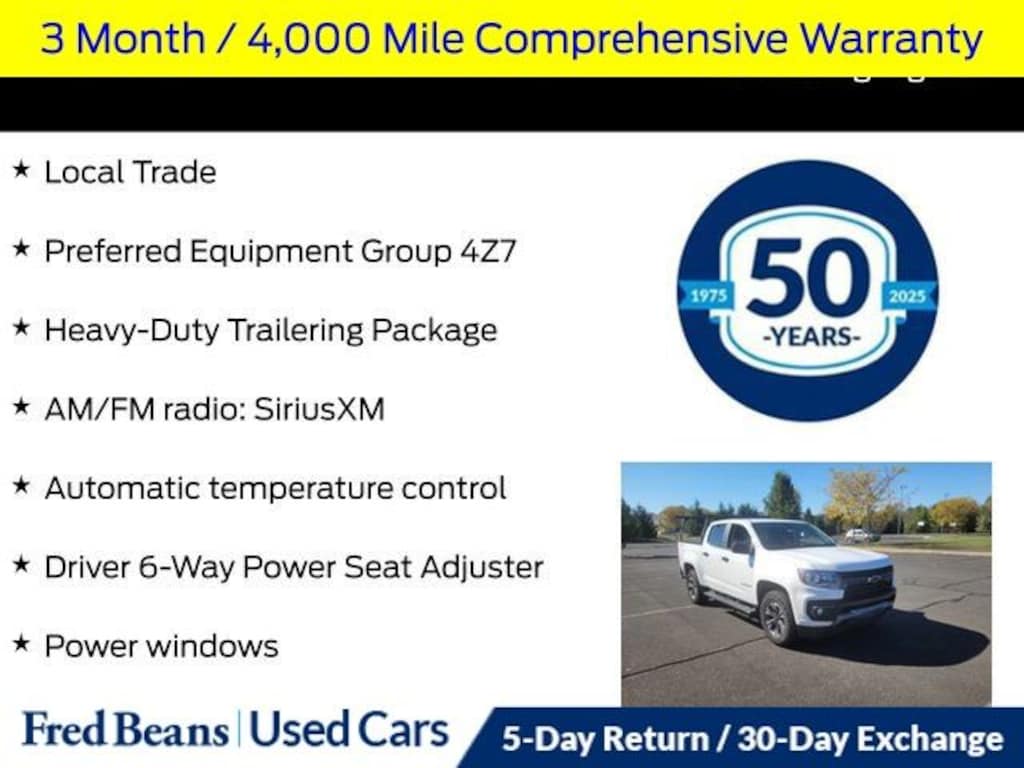 Recent Arrival! 2022 Chevrolet Colorado Z71 V6 8-Speed Automatic 4WD 4D Crew Cab Summit White Local Trade, 3 Month / 4,000 Mile Comprehensive Warranty, Ford Blue Advantage Certified, AM/FM radio: SiriusXM, Apple CarPlay/Android Auto, Automatic temperature control, Cloth/Leatherette Seat Trim, Driver 6-Way Power Seat Adjuster, Front Bucket Seats, Front fog lights, Heated door mirrors, Heated Driver & Front Passenger Seats, Heated steering wheel, Heavy-Duty Trailering Package, Hitch Guidance, Power door mirrors, Power windows, Preferred Equipment Group 4Z7, Remote keyless entry, Speed control, Tilt steering wheel, Tow/Haul Mode, Ultrasonic Rear Park Assist, Wheels: 17" x 8" Bright Machined Aluminum.