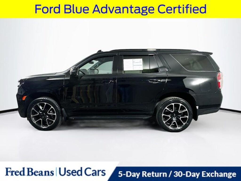 2022 Chevrolet Tahoe RST EcoTec3 5.3L V8 10-Speed Automatic with Overdrive 4WD 4D Sport Utility Black Local Trade, 3 Month / 4,000 Mile Comprehensive Warranty, Ford Blue Advantage Certified, 1st & 2nd Row Color-Keyed Carpeted Floor Mats, 2nd Row Pwr Release 60/40 Split-Folding Bench Seat, 3rd Row 60/40 Power-Folding Split-Bench Seat, Apple CarPlay/Android Auto, Auto-Dimming Inside Rear-View Mirror, Automatic Stop/Start, Automatic temperature control, Bose 9-Speaker Stereo Audio System Feature, Bright Front & Rear Door Sill Plates, Color-Keyed Carpeting Floor Covering, Driver & Front Outboard Passenger Airbags, Driver Alert Package, Dual-Pane Power Panoramic Sunroof, Enhanced Driver Information Center, Floor Console w/Storage Area, Front dual zone A/C, Hands-Free Rear Power Programmable Liftgate, HD Surround Vision, Heated 2nd Row Outboard Seats, Heated door mirrors, Heated Driver & Front Passenger Seats, Heated Steering Wheel, Infotainment Display, Lane Change Alert w/Side Blind Zone Alert, Leather-Wrapped Steering Wheel, LED Daytime Running Lamps, Luxury Package, Memory Settings, Memory Settings for Driver, Navigation System, Outside Heated Power-Adjustable Mirrors, Power Liftgate, Power Tilt & Telescopic Steering Column, Power windows, Preferred Equipment Group 1SP, Rear air conditioning, Rear Cross Traffic Alert, Rear Pedestrian Alert, Rear window defroster, Remote keyless entry, Remote Start, Set of 4 Wheel Locks (LPO), SiriusXM Radio w/360L, Start/Stop System Disable Button, Universal Home Remote, Wheels: 22" x 9" Bright Machined, Wireless Charging.