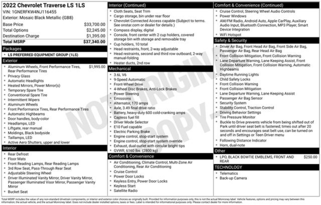This 2022 Chevrolet Traverse LS has been meticulously inspected and certified, ensuring you can drive with confidence. With low mileage and a comprehensive warranty, this vehicle represents an exceptional value proposition.