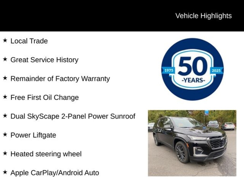 Recent Arrival! 2023 Chevrolet Traverse RS 3.6L V6 SIDI VVT 9-Speed Automatic AWD 4D Sport Utility Mosaic Black Metallic Local Trade, Great Service History, Remainder of Factory Warranty, Free First Oil Change, AWD, Apple CarPlay/Android Auto, Dual SkyScape 2-Panel Power Sunroof, Heated front seats, Heated steering wheel, Power Liftgate.