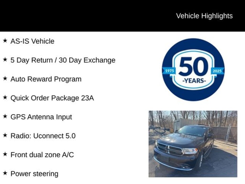 Powered by a robust 3.6L V6 Flex Fuel engine and equipped with an 8-Speed Automatic transmission and All-Wheel Drive, this Durango delivers a commanding presence on the road. With an impressive fuel efficiency of 17 MPG in the city and 24 MPG on the highway, you'll enjoy the perfect balance of power and efficiency.