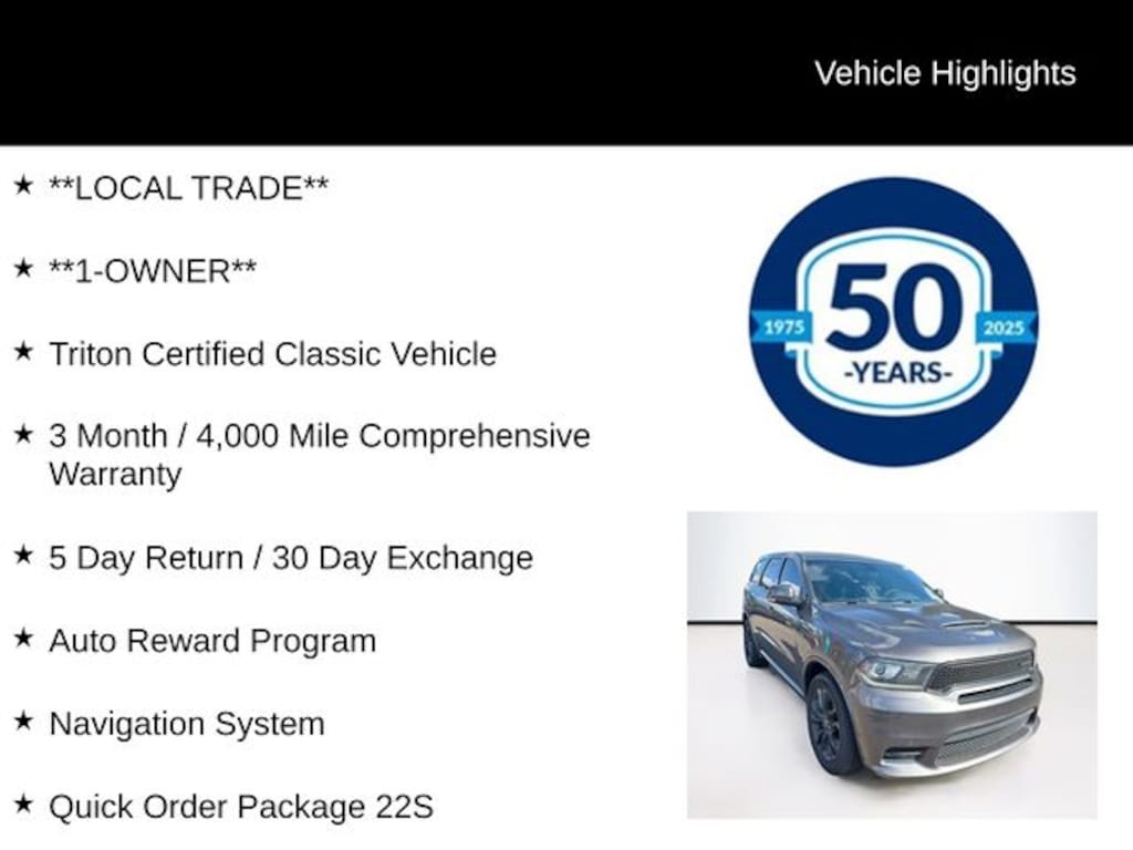 **LOCAL TRADE**, **1-OWNER**, Triton Certified Classic Vehicle, 3 Month / 4,000 Mile Comprehensive Warranty, 5 Day Return / 30 Day Exchange, Auto Reward Program, Apple CarPlay/Android Auto, Navigation System, ParkView Rear Back-Up Camera, Power Liftgate, Quick Order Package 22S, 3.09 Rear Axle Ratio, 3rd row seats: split-bench, 4-Wheel Disc Brakes, 9 Speakers, ABS brakes, Air Conditioning, Alloy wheels, AM/FM radio: SiriusXM, Anti-whiplash front head restraints, Audio memory, Auto High-beam Headlights, Auto-dimming door mirrors, Auto-dimming Rear-View mirror, Auto-leveling suspension, Automatic temperature control, Blind Spot & Cross Path Detection, Brake assist, Bumpers: body-color, Compass, Delay-off headlights, Driver door bin, Driver vanity mirror, Dual front impact airbags, Dual front side impact airbags, Electronic Stability Control, Emergency communication system: Roadside Assistance/9-1-1 Call, Four wheel independent suspension, Front anti-roll bar, Front Bucket Seats, Front Center Armrest w/Storage, Front dual zone A/C, Front fog lights, Front License Plate Bracket, Front reading lights, Fully automatic headlights, Garage door transmitter, Heated door mirrors, Heated front seats, Heated rear seats, Heated steering wheel, Heavy-Duty Engine Cooling, High-Intensity Discharge Headlights, Illuminated entry, Knee airbag, Leather Suede Bucket Seats, Low tire pressure warning, Manufacturer's Statement of Origin, Memory seat, Occupant sensing airbag, Outside temperature display, Overhead airbag, Overhead console, Panic alarm, Passenger door bin, Passenger vanity mirror, Power door mirrors, Power driver seat, Power passenger seat, Power steering, Power windows, Radio data system, Radio: Uconnect 4C Nav w/8.4" Display, Rain sensing wipers, Rear air conditioning, Rear anti-roll bar, Rear reading lights, Rear seat center armrest, Rear window defroster, Rear window wiper, Remote keyless entry, Security system, Speed control, Speed-Sensitive Wipers, Split folding rear seat, Spoiler, Steering wheel mounted audio controls, Tachometer, Telescoping steering wheel, Tilt steering wheel, Traction control, Trip computer, Turn signal indicator mirrors, Variably intermittent wipers, Wheels: 20" x 8.0" Satin Carbon - Design 1, Apple CarPlay/Android Auto, Navigation System, ParkView Rear Back-Up Camera, Power Liftgate, Quick Order Package 22S.