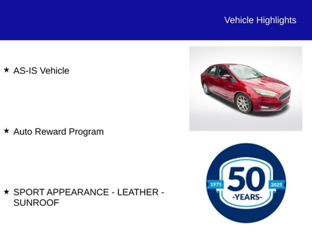 This 2015 Ford Focus SE is a stylish and efficient compact car that's ready to take on your daily commute or weekend adventures. With its sleek red exterior and well-appointed interior, this Focus is sure to turn heads wherever you go.