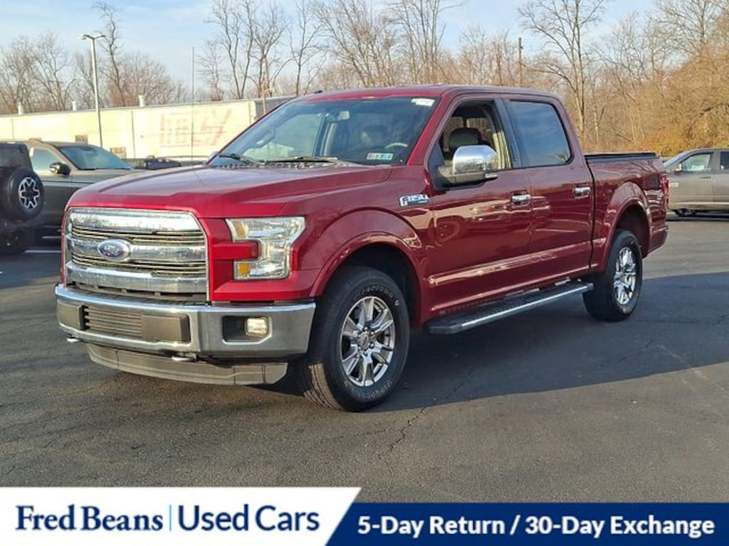 2016 Ford F-150 Lariat 5.0L V8 FFV 6-Speed Automatic Electronic 4WD 4D SuperCrew Ruby Red AS-IS Vehicle, Free First Oil Change, Auto Reward Program, 4WD.
