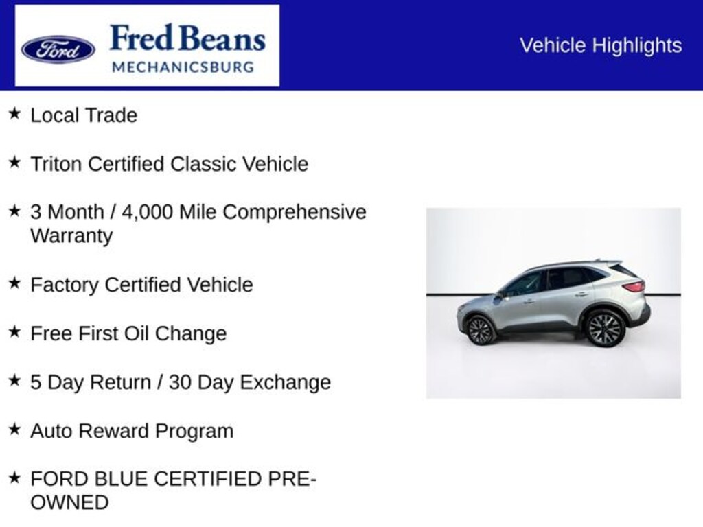 2020 Ford Escape SEL EcoBoost 2.0L I4 GTDi DOHC Turbocharged VCT 8-Speed Automatic AWD 4D Sport Utility Ingot Silver Local Trade, Triton Certified Classic Vehicle, 3 Month / 4,000 Mile Comprehensive Warranty, Factory Certified Vehicle, Free First Oil Change, 5 Day Return / 30 Day Exchange, Auto Reward Program, AWD, Navigation System, 18" Machined-Face Aluminum Wheels, 3.81 axle ratio, 4-Wheel Disc Brakes, 6 Speakers, ABS brakes, Adaptive Cruise Control w/Stop-and-Go, Air Conditioning, Alloy wheels, AM/FM radio: SiriusXM, AM/FM Stereo, Auto High-beam Headlights, Automatic temperature control, Brake assist, Bumpers: body-color, Compass, Delay-off headlights, Driver door bin, Driver vanity mirror, Dual front impact airbags, Dual front side impact airbags, Electronic Stability Control, Emergency communication system: SYNC 3 911 Assist, Equipment Group 301A, Exterior Parking Camera Rear, Ford Co-Pilot360 Assist, FordPass Connect, Four wheel independent suspension, Front anti-roll bar, Front Bucket Seats, Front Center Armrest, Front fog lights, Front reading lights, Fully automatic headlights, Heated ActiveX Front Sport Contour Bucket Seats, Heated door mirrors, Heated front seats, Heated steering wheel, Illuminated entry, Knee airbag, Leather steering wheel, Low tire pressure warning, Memory seat, Occupant sensing airbag, Outside temperature display, Overhead airbag, Overhead console, Panic alarm, Passenger door bin, Passenger vanity mirror, Power door mirrors, Power driver seat, Power Liftgate, Power steering, Power windows, Radio data system, Rear anti-roll bar, Rear reading lights, Rear seat center armrest, Rear window defroster, Rear window wiper, Remote keyless entry, Speed control, Speed-sensing steering, Speed-Sensitive Wipers, Split folding rear seat, Spoiler, Steering wheel mounted audio controls, SYNC 3 Communications & Entertainment System, Tachometer, Telescoping steering wheel, Tilt steering wheel, Traction control, Trip computer, Variably intermittent wipers, Voice-Activated Touchscreen Navigation System, Wheels: 19" Machined Aluminum, FORD BLUE CERTIFIED PRE-OWNED, AWD, Navigation System.