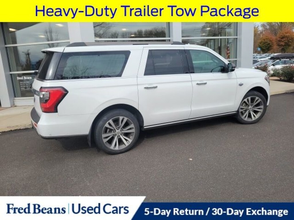 Recent Arrival! 2020 Ford Expedition Max King Ranch EcoBoost 3.5L V6 GTDi DOHC 24V Twin Turbocharged 10-Speed Automatic RWD 4D Sport Utility Oxford White Local Trade, 3rd row seats: split-bench, Adjustable pedals, Automatic temperature control, Electronic Limited Slip w/3.73 Axle Ratio, Equipment Group 400A, Exterior Parking Camera Rear, Front Bucket Seats, Front dual zone A/C, Garage door transmitter, Heated door mirrors, Heated front seats, Heated steering wheel, Heated/Cooled Del Rio Leather Fr Captain's Chairs, Heavy-Duty Engine Radiator, Heavy-Duty Trailer Tow Package, Integrated Trailer Brake Controller, Leather steering wheel, Pedal memory, Power door mirrors, Power driver seat, Power Liftgate, Power moonroof, Power passenger seat, Power windows, Pro Trailer Backup Assist, Radio: B&O Sound System by Bang & Olufsen, Rain sensing wipers, Rear air conditioning, Rear window defroster, Rear window wiper, Remote keyless entry, SiriusXM Satellite Radio, Speed control, SYNC 3 Communications & Entertainment System, Tilt steering wheel, Turn signal indicator mirrors, Ventilated front seats, Wheels: 22" 6-Spoke Painted Machined-Face Aluminum.