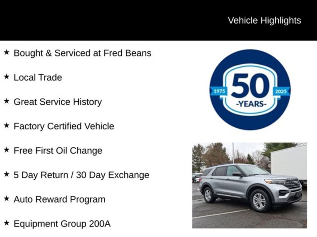 Recent Arrival! 2023 Ford Explorer XLT 2.3L EcoBoost I-4 10-Speed Automatic 4D Sport Utility Iconic Silver Metallic Bought & Serviced at Fred Beans, Local Trade, Great Service History, Factory Certified Vehicle, Free First Oil Change, 5 Day Return / 30 Day Exchange, Auto Reward Program, Explorer XLT, 4D Sport Utility, 2.3L EcoBoost I-4, 10-Speed Automatic, 4WD, Iconic Silver Metallic, Ebony w/Heated Unique Cloth Captain's Chairs, Class IV Trailer Tow Package, Equipment Group 200A. 20/27 City/Highway MPG