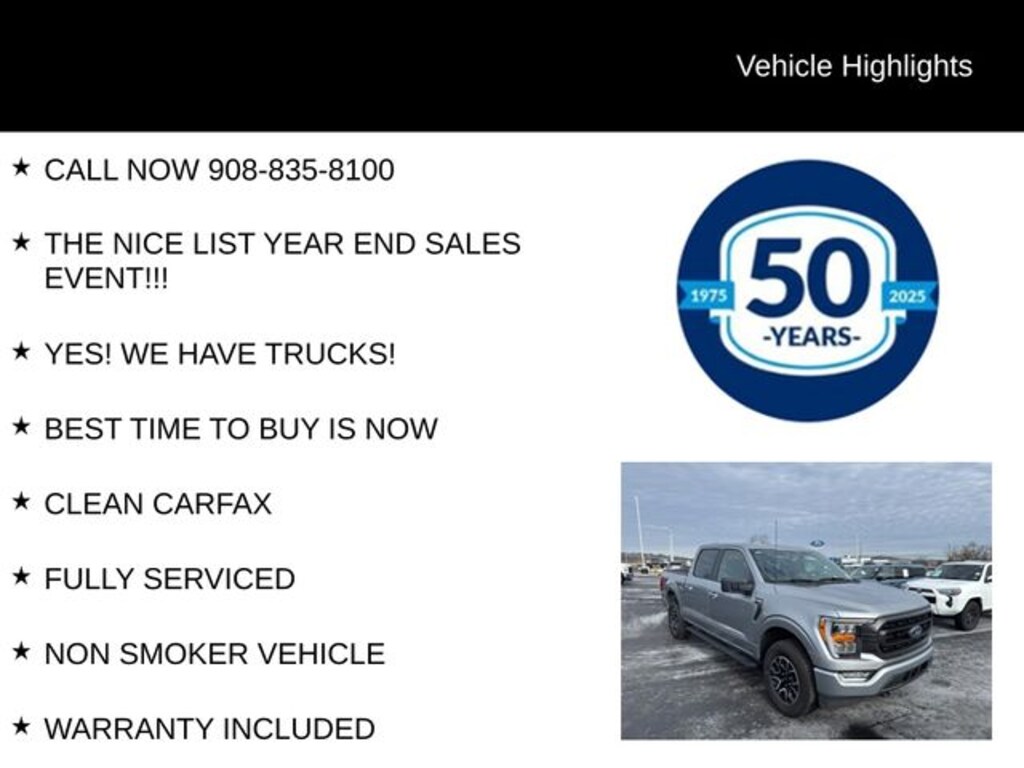 CALL NOW 908-835-8100, Q1 KICKOFF SALES EVENT!!!, YES! WE HAVE TRUCKS!, BEST TIME TO BUY IS NOW, Auto Reward Program, CLEAN CARFAX, FULLY SERVICED, NON SMOKER VEHICLE, WARRANTY INCLUDED, HEATED SEATS, CALL NOW!!! 908-835-8100, Free First Oil Change, 5 Day Return / 30 Day Exchange, 4WD. 2023 Ford F-150 XLT 2.7L V6 EcoBoost 10-Speed Automatic 4WD 4D SuperCrew Iconic Silver Metallic