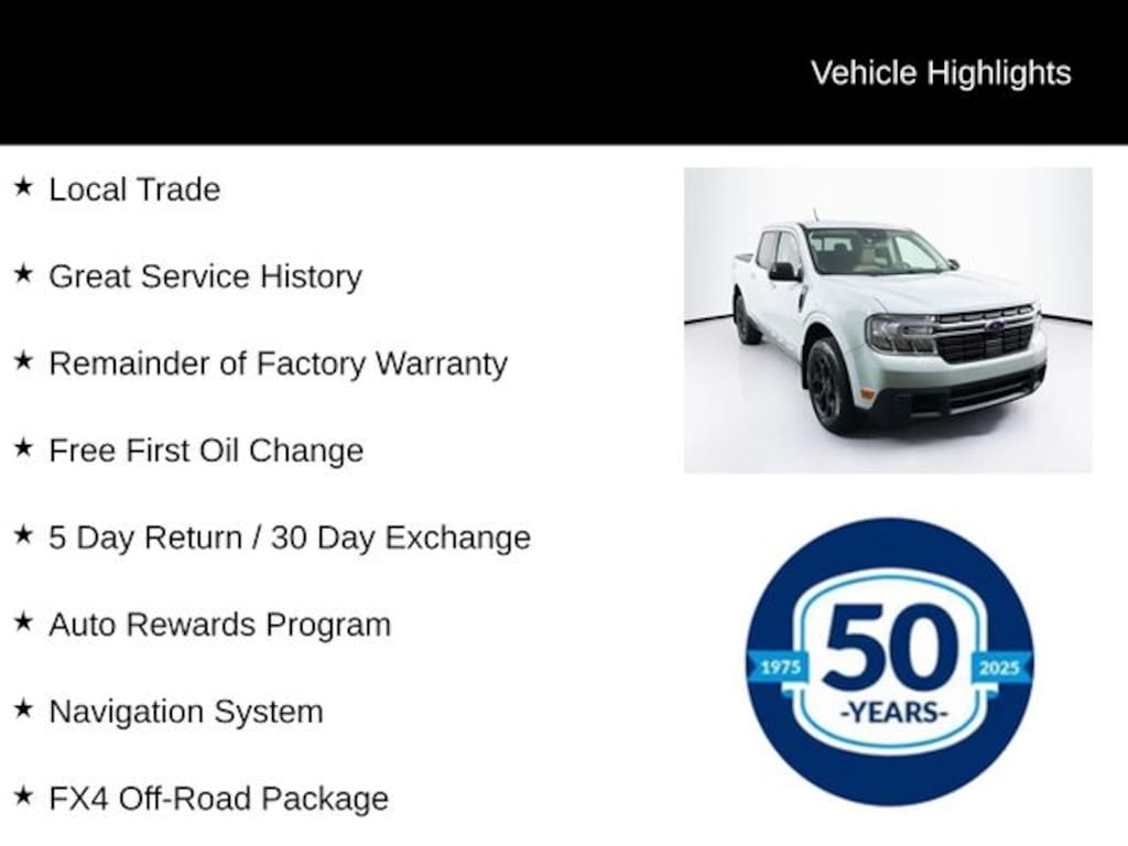 2024 Ford Maverick Lariat Lariat EcoBoost 2.0L I4 GTDi DOHC Turbocharged VCT 8-Speed Automatic AWD 4D Crew Cab Cactus Local Trade, Great Service History, Remainder of Factory Warranty, Free First Oil Change, 5 Day Return / 30 Day Exchange, Auto Rewards Program, 4K Tow Package, Auto High-beam Headlights, Equipment Group 500A Standard, Exposed Front Tow Hooks, Exterior Parking Camera Rear, Front dual zone A/C, FX4 Off-Road Package, Heated door mirrors, Heated front seats, Heated steering wheel, Illuminated entry, Navigation System, Performance Suspension, Power door mirrors, Power driver seat, Radio: B&O Sound System by Bang & Olufsen, SiriusXM Radio, Steering wheel mounted audio controls, SYNC 3 Communications & Entertainment System, Trailer Brake Controller, Trailer Hitch Receiver, Upgraded Drive Ratio, Wheels: 17" Unique Ebony Painted Aluminum.