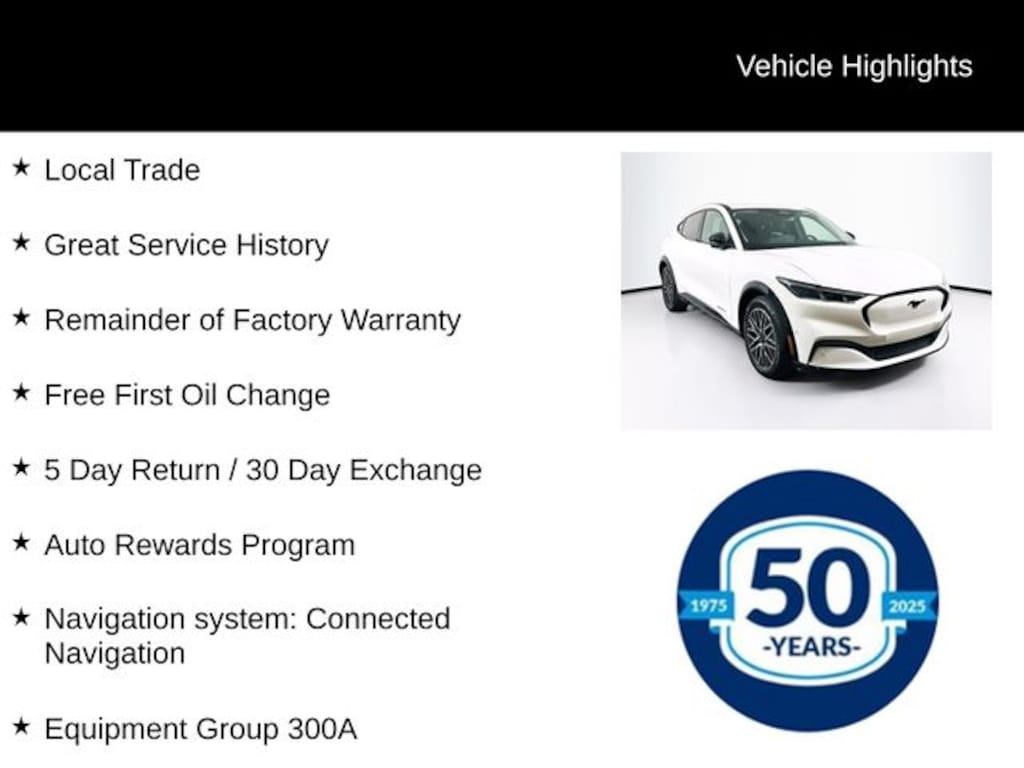 2024 Ford Mustang Mach-E Premium Premium Dual Electric Motor Single-Speed Automatic AWD 4D Sport Utility White Metallic Local Trade, Great Service History, Remainder of Factory Warranty, Free First Oil Change, 5 Day Return / 30 Day Exchange, Auto Rewards Program, AM/FM radio: SiriusXM with 360L, Apple CarPlay/Android Auto, Auto High-beam Headlights, Equipment Group 300A, Exterior Parking Camera Rear, Front dual zone A/C, Heated door mirrors, Heated front seats, Heated Perforated ActiveX Bucket Seats, Heated steering wheel, Illuminated entry, Memory seat, Navigation system: Connected Navigation, Power door mirrors, Power driver seat, Power Liftgate, Power passenger seat, Rain sensing wipers, Remote keyless entry, Steering wheel mounted audio controls, SYNC 4A w/Enhanced Voice Recognition, Turn signal indicator mirrors, Wheels: 19" Bright Machined-Face Aluminum.