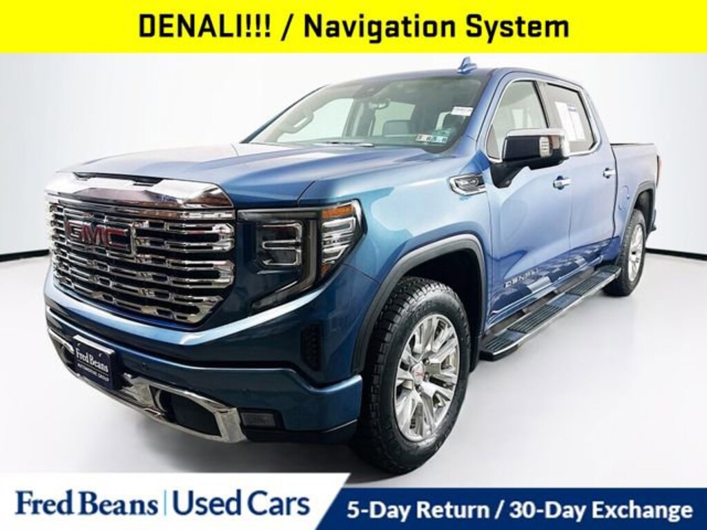 Clean CARFAX. CARFAX One-Owner.Recent Arrival! 2024 GMC Sierra 1500 Denali EcoTec3 5.3L V8 10-Speed Automatic 4WD 4D Crew Cab Downpour Metallic Factory Certified Vehicle, Free First Oil Change, 5 Day Return / 30 Day Exchange, Auto Reward Program, DENALI!!!, 10-Speed Automatic, 4WD, Jet Black Leather, Multicolor 15 Diagonal Head-Up Display, Navigation System, Premium Bose 7-Speaker Sound System.Certified. Certification Program Details: Triton Certified Shield Classic 3-Month or 4,000-Mile Comprehensive Coverage ($100 deductible) 100+ Multipoint Inspection PA State Inspection & Emissions Test Oil, Lube, & Filter Service Completed 5-Day Return Policy1 30-Day Exchange Policy2 CARFAXTM Report AutoRewards Membership See salesperson for additional offers & complete details.For better peace of mind all our used vehicles have a 127-point inspection and come with a 5-day return, 30-day exchange (As-Is vehicles are excluded). Our exclusive Auto Rewards Program provides better value with Free First Oil change, Free Pa State Safety inspections, discounts for local merchants and more. Plus, you can earn up to $2000 towards your next vehicle just by servicing with Fred Beans! As Fred Beans always says, our used cars are better because our reputation depends on it.Although every reasonable effort has been made to ensure the accuracy of the information contained on this site, absolute accuracy cannot be guaranteed. This site, and all information and materials appearing on it, are presented to the user as is without warranty of any kind, either express or implied. All vehicles are subject to prior sale. Price does not include applicable tax, title, license, processing and/or documentation fees. Vehicles shown at different locations are not currently in our inventory (Not in Stock) but can be made available to you at our location within a reasonable date from the time of your request, not to exceed one week. Residency restrictions may apply.
