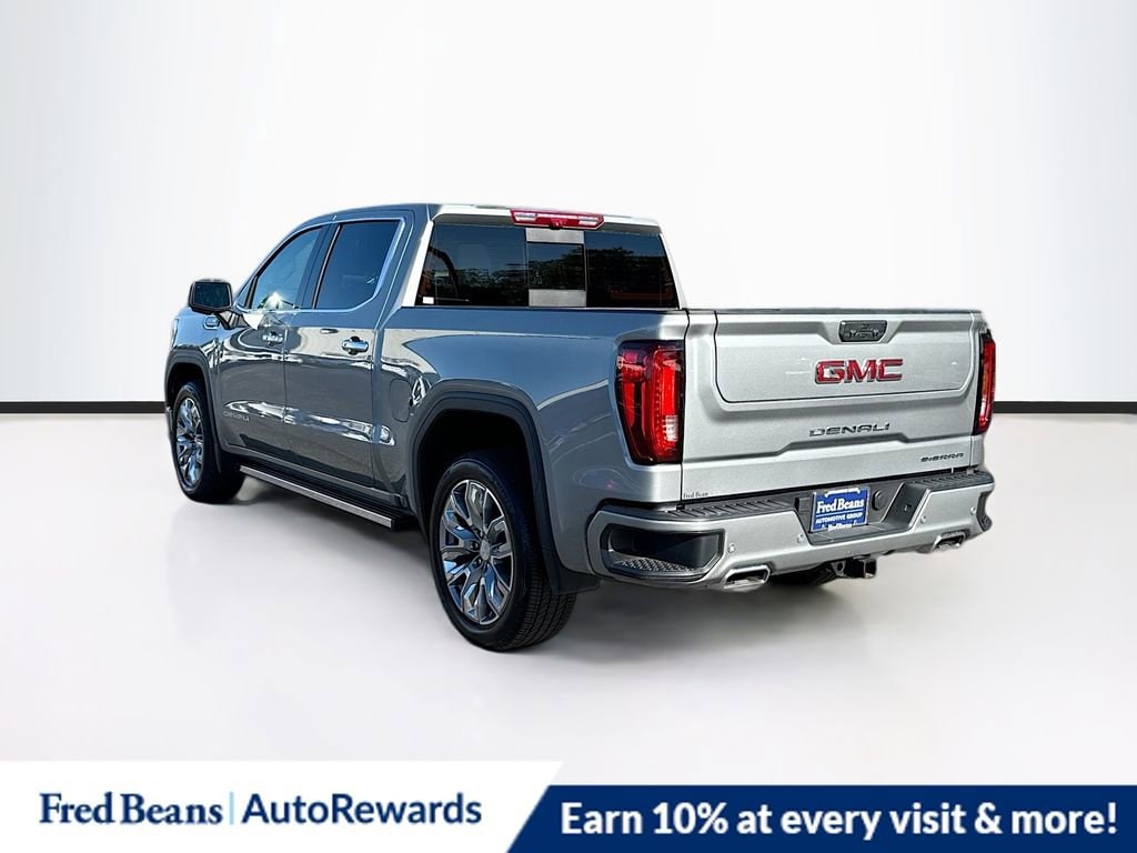 Sterling Metallic 2025 GMC Sierra 1500 Denali 4WD 10-Speed Automatic EcoTec3 6.2L V8 10-Speed Automatic, 4WD, Jet Black Leather, 12-Way Power Driver Seat Adjuster w/Lumbar, 12-Way Power Passenger Seat Adjuster w/Lumbar, 120-Volt Bed Mounted Power Outlet, 120-Volt Interior Power Outlet, 170 Amp Alternator, 2 Charge/Data USB Ports Inside Center Console, 2 Type-C Charge-Only Rear USB Ports, 2 USB Ports, 3.23 Rear Axle Ratio, 4-Wheel Disc Brakes, 7 Speakers, ABS brakes, Adaptive suspension, Air Conditioning, Alloy wheels, AM/FM radio: SiriusXM with 360L, Apple CarPlay/Android Auto, Auto High-beam Headlights, Auto-dimming door mirrors, Auto-dimming Rear-View mirror, Auto-Locking Rear Differential, Automatic temperature control, Auxiliary External Transmission Oil Cooler, Bed View Camera, Brake assist, Buckle to Drive, Bumpers: body-color, Chrome Header w/Signature Denali Chrome Grille, Chrome Recovery Hooks, Chrome Wheel To Wheel Assist Steps, Color-Keyed Carpeting Floor Covering, Compass, Deep-Tinted Glass, Delay-off headlights, Denali Premium Suspension w/Adaptive Ride Control, Denali Reserve Package, Driver door bin, Driver Memory, Driver vanity mirror, Dual Active Exhaust, Dual front impact airbags, Dual front side impact airbags, Electric Rear-Window Defogger, Electronic Stability Control, Emergency communication system: OnStar, Enhanced Automatic Emergency Braking, Floor-Mounted Center Console, Following Distance Indicator, Forge Perforated Leather Seat Trim, Forward Collision Alert, Front anti-roll bar, Front Bucket Seats, Front Center Armrest, Front dual zone A/C, Front fog lights, Front Pedestrian Braking, Front Rain-Sensing Wipers, Front reading lights, Front wheel independent suspension, Fully automatic headlights, Garage door transmitter, Genuine wood console insert, Genuine wood dashboard insert, Genuine wood door panel insert, GMC MultiPro Power Steps, HD Surround Vision, Heated 2nd Row Outboard Seats, Heated door mirrors, Heated Driver & Front Outboard Passenger Seating, Heated front seats, Heated rear seats, Heated steering wheel, Heavy-Duty Air Filter, Hill Descent Control, Hitch Guidance, Hitch View, Illuminated entry, In-Vehicle Trailering System App, Integrated Trailer Brake Controller, IntelliBeam Automatic High Beam On/Off, Keyless Open & Start, Lane Keep Assist w/Lane Departure Warning, LED Cargo Area Lighting, Low tire pressure warning, Memory seat, Multicolor 15 Diagonal Head-Up Display, Navigation System, Occupant sensing airbag, OnStar Services Capable, Outside temperature display, Overhead airbag, Overhead console, Panic alarm, Passenger door bin, Passenger vanity mirror, Perimeter Lighting, Power Door Locks, Power door mirrors, Power driver seat, Power Front Passenger Windows w/Express Up/Down, Power Front Windows w/Driver Express Up/Down, Power passenger seat, Power Rake & Telescoping Steering Column, Power Rear Windows w/Express Down, Power Sliding Rear Window w/Rear Defogger, Power steering, Power Sunroof, Power windows, Preferred Equipment Group 5SA, Premium Bose 7-Speaker Sound System, Push Button Start, Radio data system, Radio: Premium GMC Infotainment Audio System, Rain sensing wipers, Rear Camera Mirror, Rear Cross Traffic Braking, Rear Pedestrian Detection, Rear reading lights, Rear seat center armrest, Rear step bumper, Rear Wheelhouse Liners, Rear window defroster, Remote keyless entry, Remote Vehicle Starter System, Safety Alert Seat, Security system, SiriusXM w/360L Trial Subscription, Speed control, Speed-sensing steering, Split folding rear seat, Spray-On Pickup Bedliner w/GMC Logo, Steering Wheel Audio Controls, Steering wheel mounted audio controls, Tachometer, Technology Package, Telescoping steering wheel, Theft Deterrent System (Unauthorized Entry), Tilt steering wheel, Traction control, Trailer Camera Provisions, Trailer Side Blind Zone Alert, Trailering Package, Tri Price includes: $2750 - Buick & GMC Consumer Cash Program. Exp. 12
