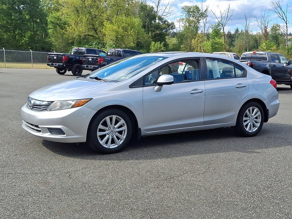 Recent Arrival! 2012 Honda Civic EX-L 1.8L I4 SOHC 16V i-VTEC 5-Speed Automatic FWD 4D Sedan Silver Great Service History, AS-IS Vehicle, Auto Rewards Program, Gray Leather, 6 Speakers.