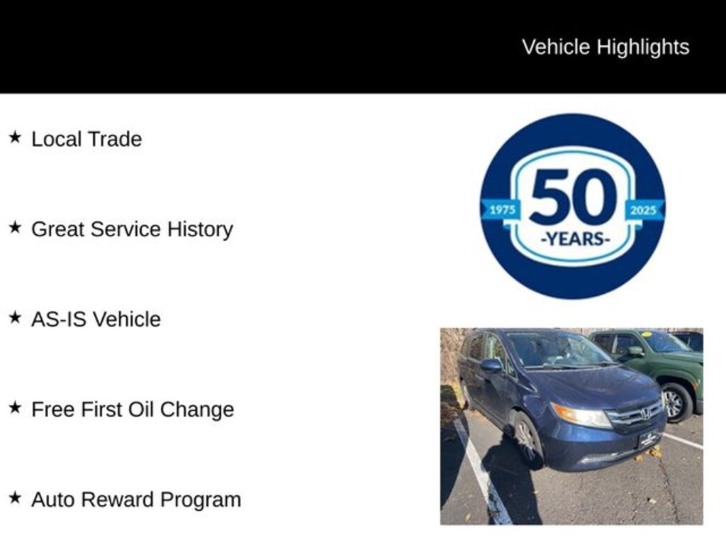 Recent Arrival! 2014 Honda Odyssey EX-L 3.5L V6 SOHC i-VTEC 24V 6-Speed Automatic FWD 4D Passenger Van Celestial Blue Metallic Local Trade, Great Service History, AS-IS Vehicle, Free First Oil Change, Auto Reward Program.