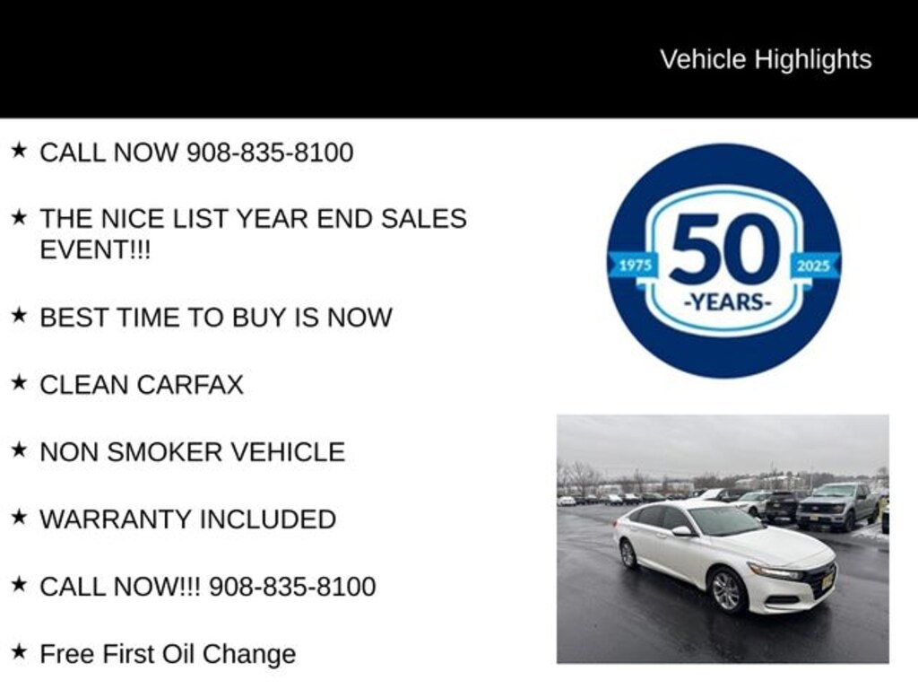 This 2018 Honda Accord LX is certified, giving you the peace of mind of a thorough inspection and the confidence of a manufacturer-backed warranty. Experience the perfect balance of practicality and sophistication â€" call 908-835-8100 to schedule a test drive today.