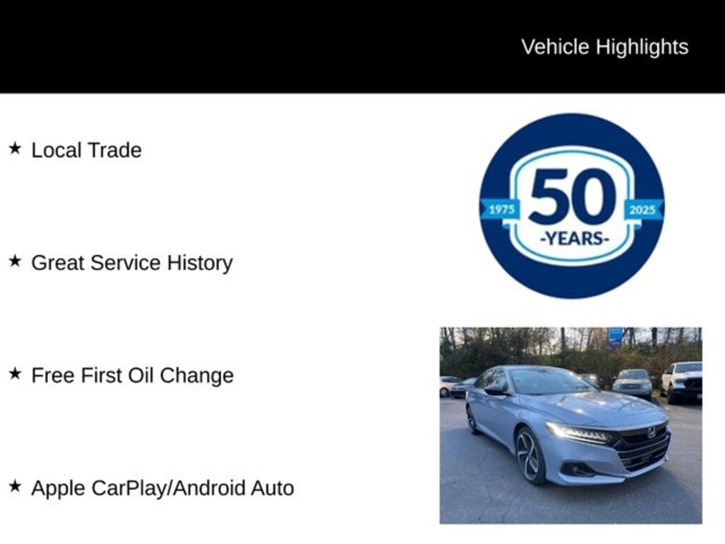 Recent Arrival! 2022 Honda Accord Sport 1.5T I4 DOHC 16V Turbocharged VTEC CVT FWD 4D Sedan Sonic Gray Pearl Local Trade, Great Service History, Free First Oil Change, Black w/Fabric Seat Trim, Apple CarPlay/Android Auto.