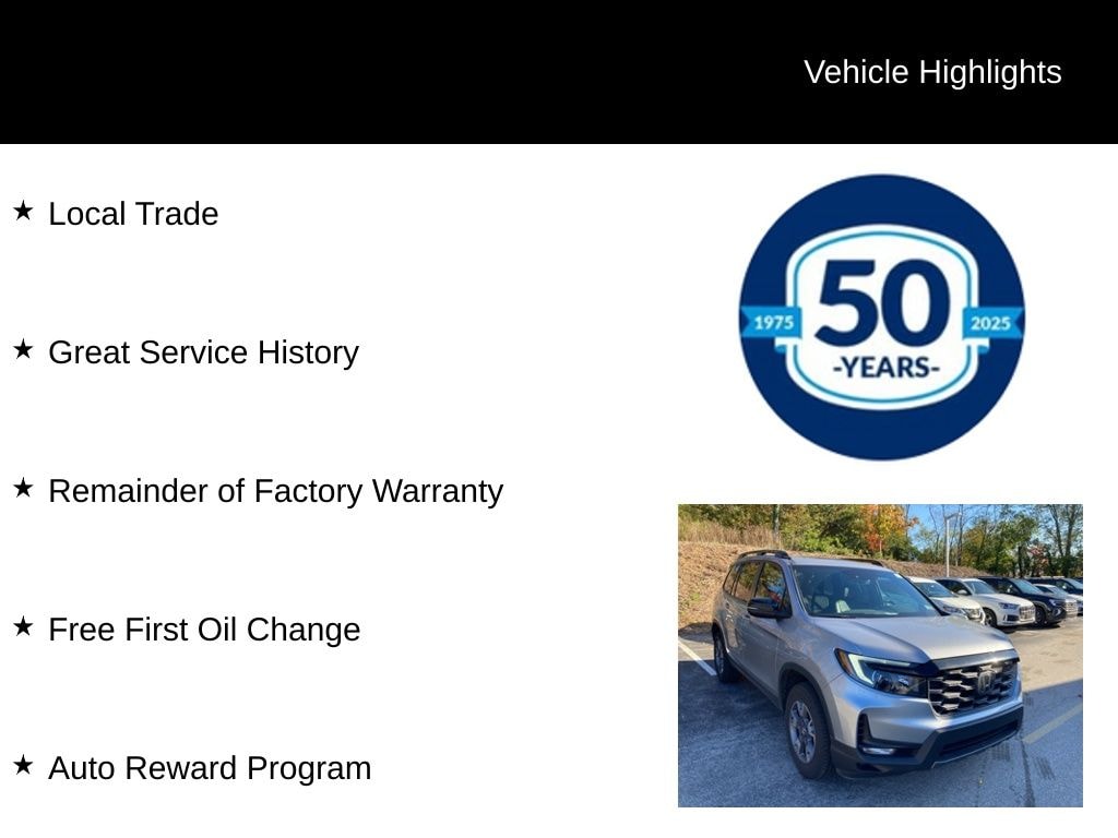 Recent Arrival! 2023 Honda Passport TrailSport 3.5L V6 24V SOHC i-VTEC 9-Speed Automatic AWD 4D Sport Utility Lunar Silver Metallic Local Trade, Great Service History, Remainder of Factory Warranty, Free First Oil Change, Auto Reward Program.