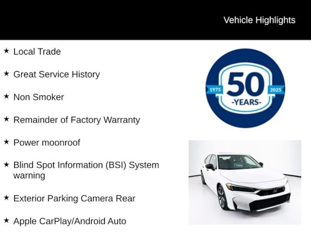 This car is fantastic! The interior is absolutely bullet proof! What I mean by saying that is, 10 years down the road, it’s still gonna look great. Honda did a great job on this car in and out! I was able to get 53 MPG driving in the city. It’s very comfortable just wish it had lumbar adjustment and a spare tire I read of the “fix a flat kit”, but overall the looks, the gas mileage, and the smoothness and the excellent build quality, it just an absolute gem. Loving my new 2026 Honda Civic Hybrid Sport Touring Hatchback.… - 5.0