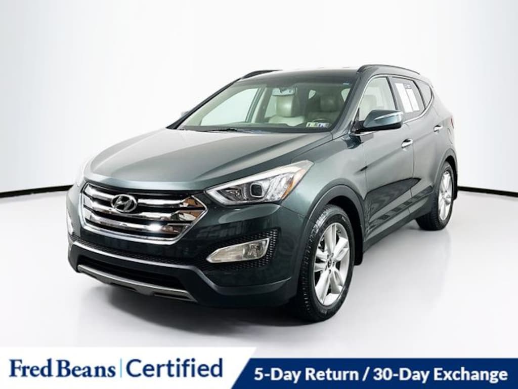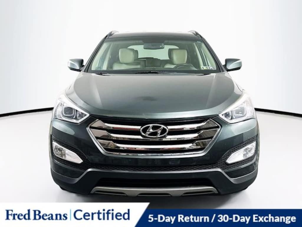 2013 Hyundai Santa Fe Sport 2.0L Turbo 2.0L Turbo 2.0L I4 DGI DOHC 16V Turbocharged 6-Speed Automatic with Shiftronic and Overdrive FWD 4D Sport Utility Juniper Green Bought & Serviced at Fred Beans, Local Trade, Great Service History, AS-IS Vehicle, Free First Oil Change, Auto Rewards Program, 19" x 7.5" Hyper Silver Alloy Wheels, Active ECO System, Automatic Headlight Control, Chrome Twin-Tip Exhaust, Dual Zone Automatic Temperature Control, Exterior Mirrors w/Turn Signal Indicators, Fog Lights, Heated Exterior Mirrors, Heated Rear Seats, Illuminated Ignition, Leather & Premium Equipment Package 05, Leather Seating Surfaces, Leather Wrapped Steering Wheel & Shift Knob, Power door mirrors, Power driver seat, Power Front Passenger Seat, Radio: AM/FM/CD/HD/XM/MP3 Audio System, Remote Keyless Entry System w/Alarm, Roof Side Rails, Sliding & Reclining 2nd Row Seats, Steering Wheel Mounted Audio & Cruise Control.