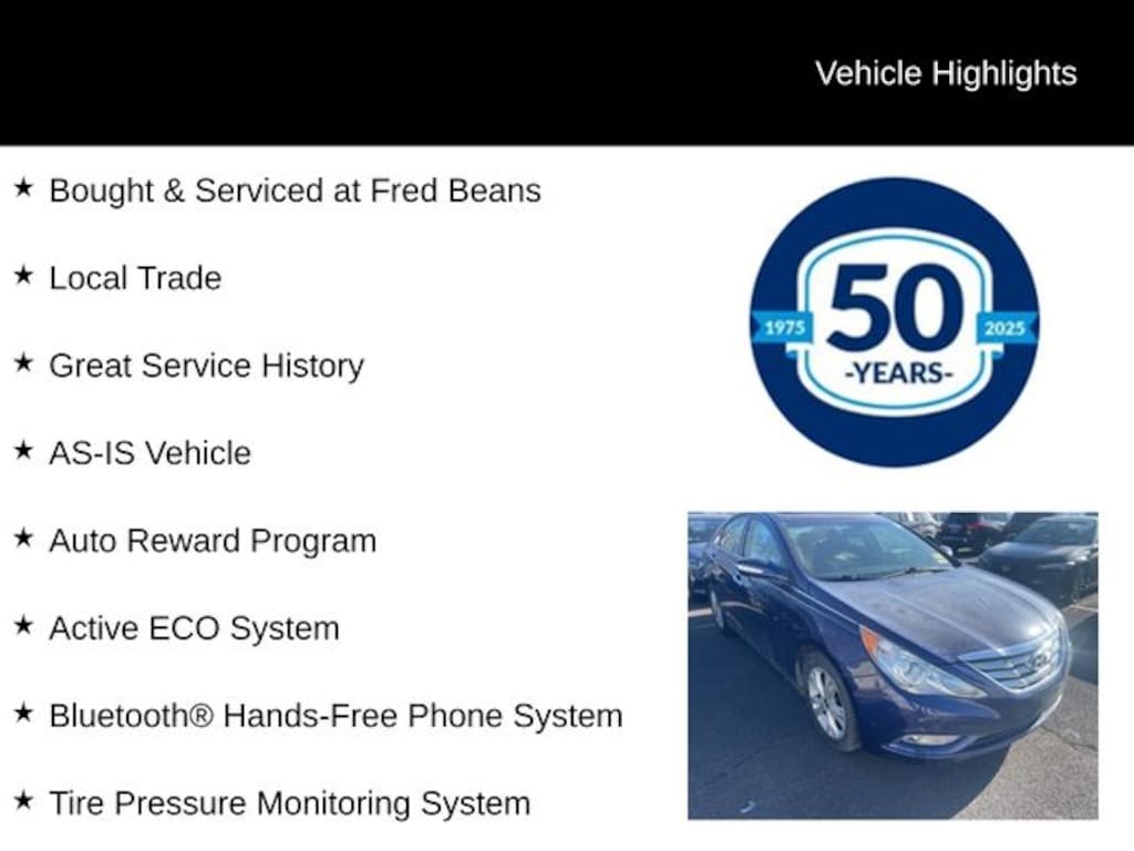 2013 Hyundai Sonata SE 2.4L 4-Cylinder DGI PZEV 6-Speed Automatic with Shiftronic FWD 4D Sedan Indigo Night Mica Bought & Serviced at Fred Beans, Local Trade, Great Service History, AS-IS Vehicle, Auto Reward Program, Gray Leather, ABS brakes, Active ECO System, Alloy wheels, Anti-Lock Braking System (ABS), Bluetooth® Hands-Free Phone System, Electronic Stability Control, Front Heated Sport Bucket Seats, Heated door mirrors, Heated front seats, Heated Mirrors, Illuminated entry, Low tire pressure warning, Remote keyless entry, Remote Keyless Entry & Alarm, Tire Pressure Monitoring System, Traction control, Traction Control System.