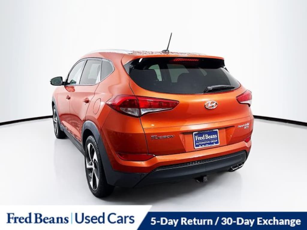 2016 Hyundai Tucson Sport 1.6L I4 DGI Turbocharged DOHC 16V ULEV II 175hp 7-Speed Automatic AWD 4D Sport Utility Sedona Sunset Free First Oil Change, Auto Reward Program, AWD, AM/FM radio: SiriusXM, Delay-off headlights, Exterior Parking Camera Rear, Fully automatic headlights, Heated door mirrors, Heated Front Bucket Seats w/Power Driver's Seat, Heated front seats, Power door mirrors, Power driver seat, Power Liftgate, Radio: Autonet AM/FM/SiriusXM/CD/MP3 Audio System, Remote keyless entry, Steering wheel mounted audio controls.